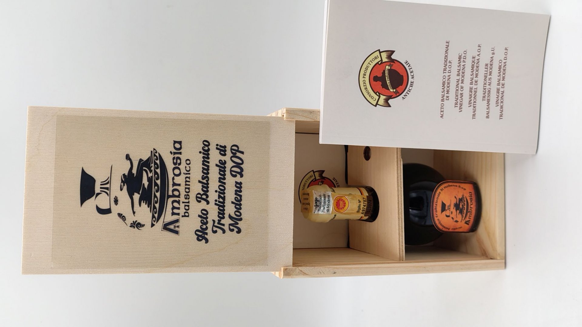 L’aceto balsamico tradizionale di Modena DOP di per se prodotto unico, nella confezione di pregio il legno assicura una soluzione di sicuro impatto.